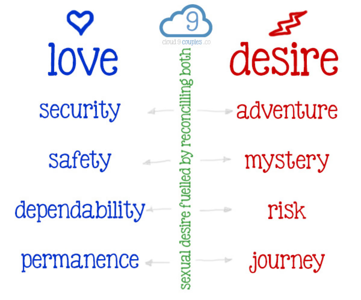 It is also important to note that Perel asserts that the “crisis of desire is often a crisis of the imagination”, which is an indication that much of eroticism comes through the way your brain interprets your environment and relationships. Along these lines, adventure, mystery, novelty and the unknown is referring to the relationship generally rather than new sexual techniques or lingerie.