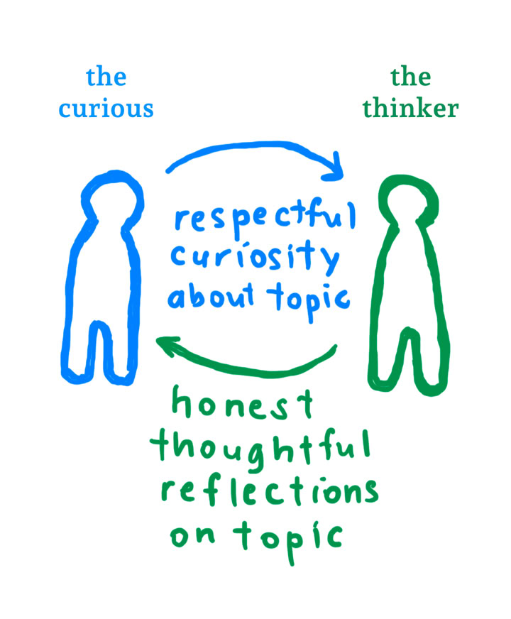 The first partner (the thinker) will raise a topic. Their partner (the curious) then asks questions about that topic so they can accurately understand the thinker’s perspective. This is called accurate cognitive empathy. This means the curious could accurately explain the why, the what, the how, and when it happens (according to the thinker). The curious does not need to agree with anything. No solutions are proposed by the curious. It is simply about the thinker being encouraged to lay that topic out on the table, and the curious understanding their perspective well. This helps the thinker to feel seen and heard. It also helps at a later time to work out ways to find solutions that fit both partners.